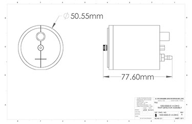 LTD-10 trap detectors have a 7mm diameter input opening for power level measurements. Radiance measurements are enabled by the installation of precision apertures over the front face of the detector. This operation is able to be performed by the user and is as simple as tightening two button head cap screws (2-56) to secure the aperture into place. Two tapped holes (1x 4-40 & 1x 8-32) populate the underside of the detectors for mounting to a post or baseplate, both of which are included your purchase of an LTD-10. To maintain a clean environment within the detector housing while the aperture is open and the detectors are exposed, a purge fitting is installed on the rear of the detector for purging the detector with pure, dry nitrogen at a flow rate of around 0.5 liters per minute.