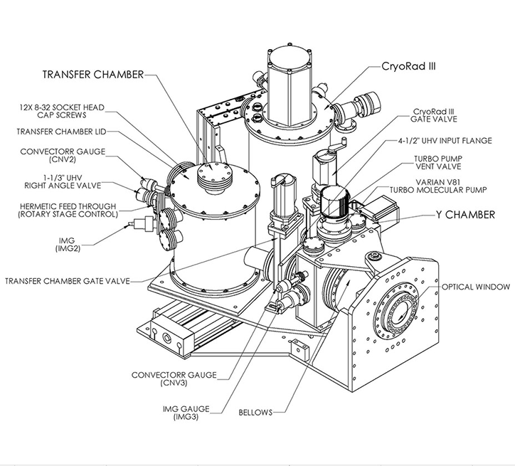 The radiometer system consists of the CryoRad III and a test chamber into which five detectors can be mounted. Both the CryoRad III and the transfer chamber are connected to an optical window using a flexible Y-shaped bellows which eliminates the need to measure the window transmittance. The comparator stage selectively moves either the CryoRad III or the transfer chamber into the beam path. Light from the monochromator (or laser) is alternately measured by the CryoRad III and a transfer detector inside the transfer chamber